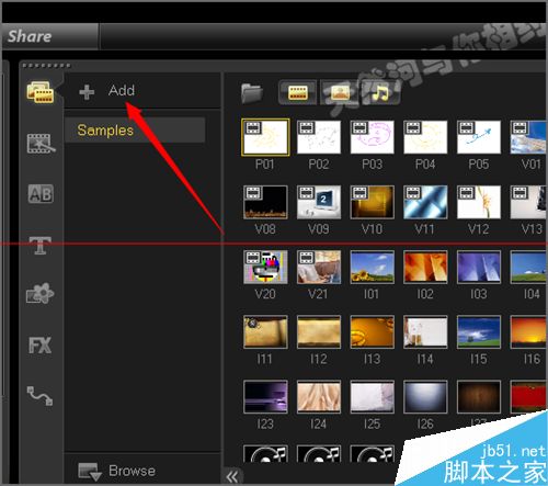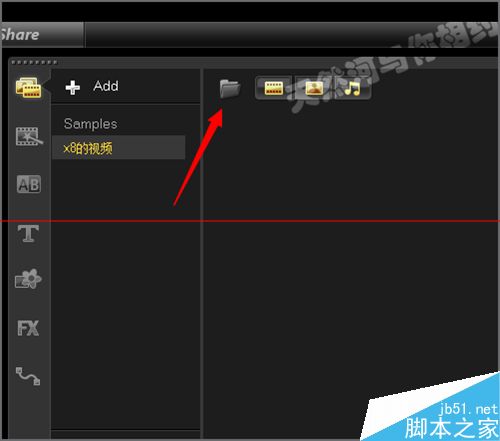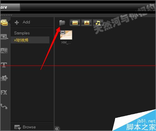 1、打开软件之后,我们在它的会声会影x6的软件界面中可以看到它的时面是有很多的视频和图片用音乐文件的。如果我们不想把所添加的视频放到它的界面中的话,可以点击添加新建一个视频文件夹。