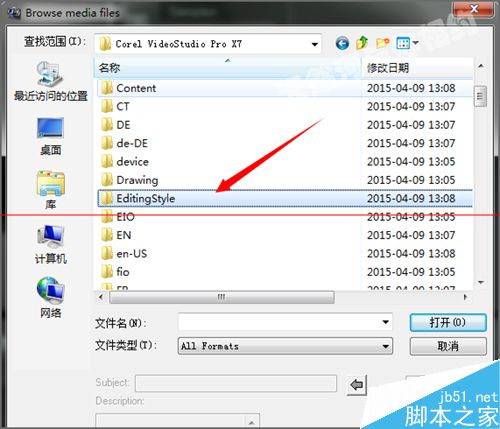 6、双击打开Corel VideoStudio Pro X8的文件后,在面板中的列表中找到EditingStyle的文件夹。
