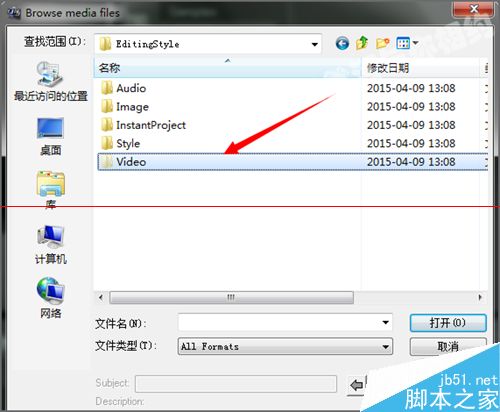 7、双击打开EditingStyle的文件夹,然后在弹出的列表中找到Video的文件夹。这个文件夹是视频文件存放的文件夹。软件所带的视频文件一般都是存放到这个文件夹中。