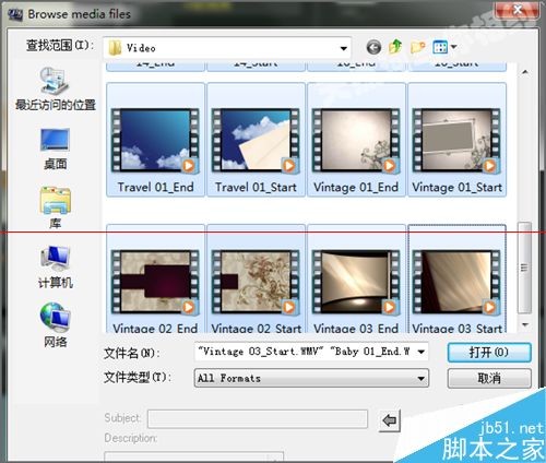 10、如果还想要把Video里面的视频文件全部添加到会声会影x6的界面中的话,这次就直接点击上面的文件夹,直接就跳出来刚才的Video文件夹。这时候把它们全部选中,点击打开。