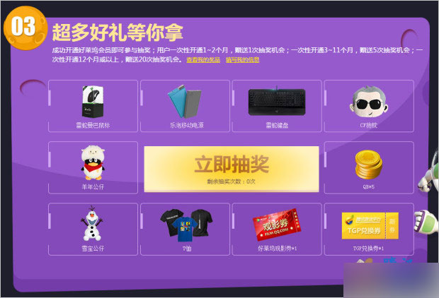 3. 在本活动页面开通好莱坞会员即可参与抽奖;用户一次性开通1~2个月,赠送1次抽奖机会;一次性开通3~11个月,赠送5次抽奖机会;一次性开通12个月或以上,赠送20次抽奖机会。