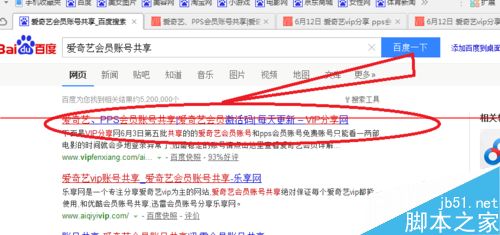 2、在百度输入爱奇艺会员账号共享,按回车键