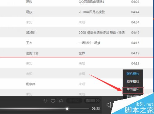 6、如果对音乐播放器的歌曲不进行单曲循环,可以对进行其它的设置,设置完成就不会单曲循环。