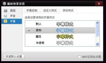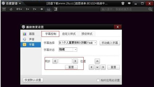 第五步:改变字幕时间属性:同样右键单击播放器,选择“字幕”选项里的“字幕控制”选项,然后在“字幕控制”下的“同步”位置,可选择延迟或提前字幕。