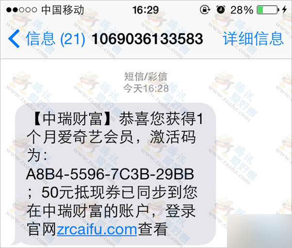 5、手机会收到爱奇艺会员激活码