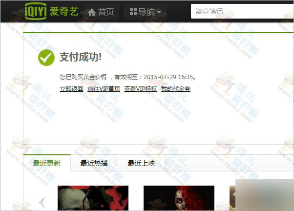 4、到这里就可以白撸一个月爱奇艺会员了。