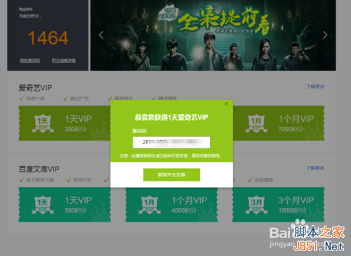 6、每天最多可以获得320分,就是说努力使用百度浏览器就可以天天兑换爱奇艺会员,那就是一直免费啦!