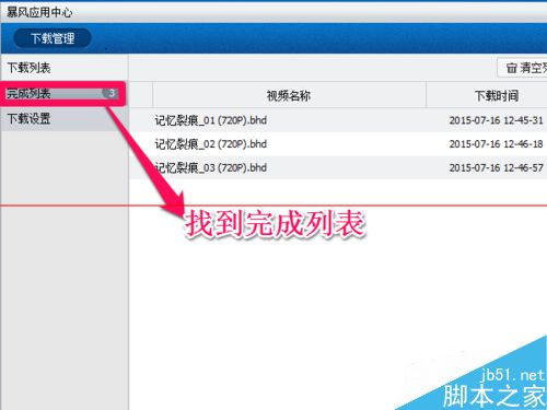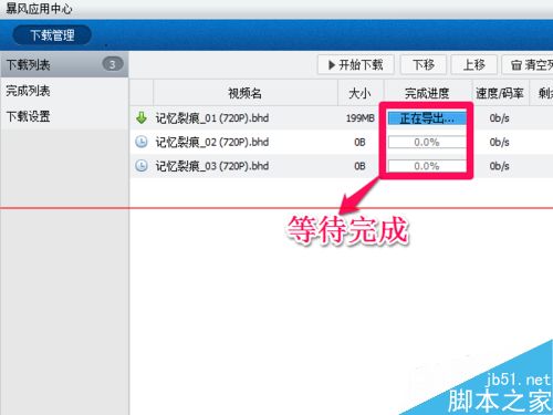 6、等待完成进度达到100%,完成后,您可以在完成列表找到刚才下载的视频。