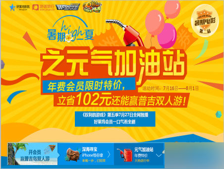 推荐阅读:开通好莱坞会员 暑期陪你High一夏活动 含三期主题活动进行
