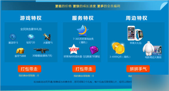 3、开通/续费成为年费会员,即可领取3个礼包,每个礼包仅限领取1次,但可以同时领取