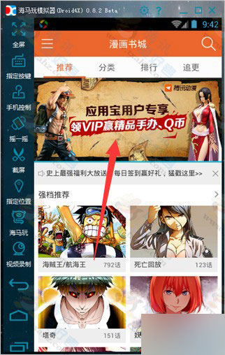 1、应用宝下载腾讯动漫APP,苹果用户可以用海马玩模拟器(安装过腾讯动漫的手机也可以,先卸载原客户端重新下载即可);打开APP 在幻灯图最后一张就是活动入口(非应用宝新下载的没有入口)。