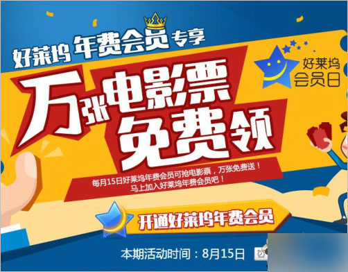 1、每月15日,好莱坞年费会员可以免费抢票1次,先到先得,抢完即止。