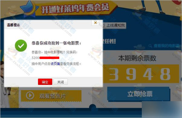 抽到电影票去卖座网兑换,兑换地址 http://www.maizuo.com/zt/index.htm?id=360