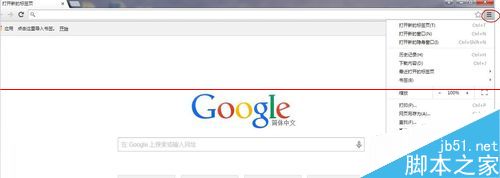 3、点击浏览器的右上角,有一个灰色的 三道横线的图标,如下图,然后进入“设置”