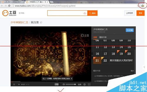6、添加完毕此扩展程序后,chrome浏览器的右上角就与之前不一样了,看下图的右上角多了一个圆形的里面有对号的标志,那就是unblock youku的扩展程序添加成功的标志,而且,刚才的不能看的土豆上的视频能播放了,其他国内视频网站也可以了