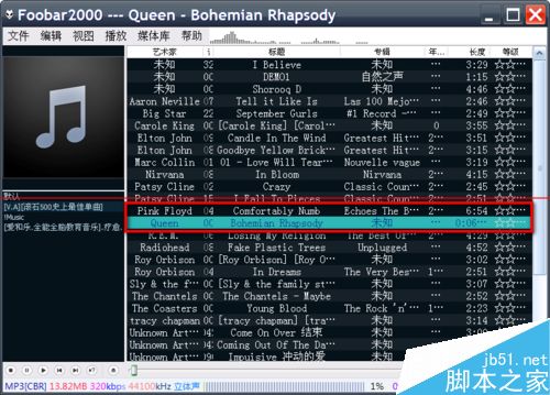 1、打开foobar2000,界面下。