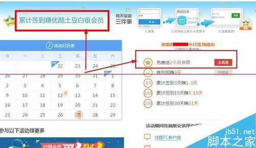 4、除了累积签到换优酷白银会员功能,还有个模块是免费送2个月会员。