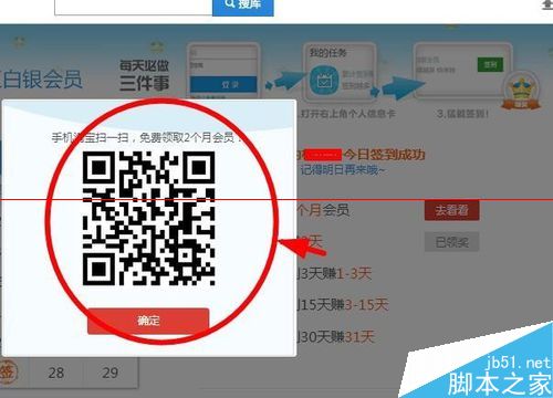 5、我们这边点击免费送2个月会员旁边的去看看按钮,会弹出一个窗口,上面有个二维码,我们使用手机进行二维码扫码。通过扫码二维码我们可以获取优酷的会员权限。