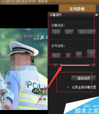 5、我们调整好字幕选择之后,接下来把字号调整完,之后点击下面的高级选项,出现一个我们可以载入字幕的界面。