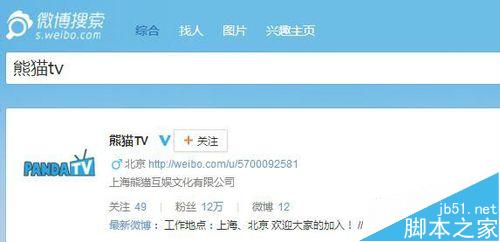1、打开微博搜索,输入“熊猫TV ”,点击搜索