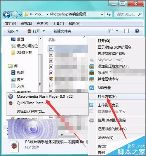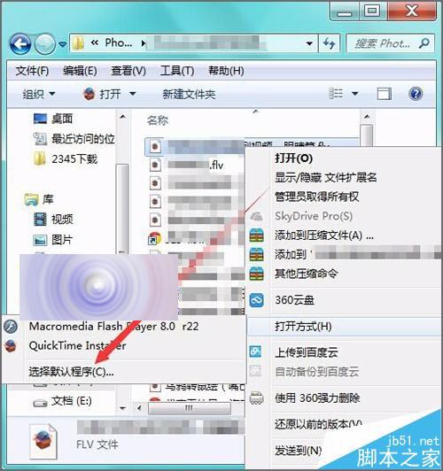 1、这是在网上下载的一些flv格式的视频文件,当用默认的程序进行播放的时候,当我们在打开方式中选择其中的flash player进行播放的时候,打开后它出现的是空白的页面。