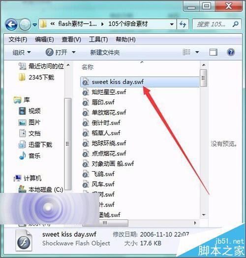 2、当我们在电脑中打开一些swf格式的视频文件的时候,当用flash player进行播放的时候就可以很快的进行打开。而如果打开flv格式的视频就会出现错误。