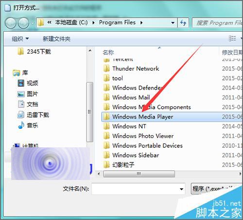 4、点击浏览之后,在打开的界面中,我们选择电脑中自带的播放器。打开电脑中的c盘,接着在文件列表中点击打开program files的文件夹,然后在它的列表中找到Windows Media Player的文件夹并打开。