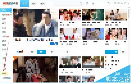 2、进入页面后,点击如页面所示的左下角的“转码”,单击进入