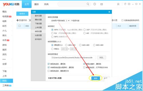 5、转码画面大小设置好后,点击页面右下方的保存就可以了