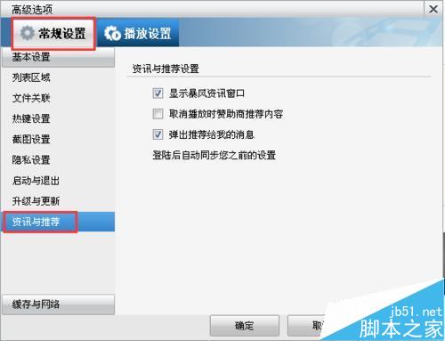 4、在弹出的对话框中选择“常规设置”下的“资讯与推荐”