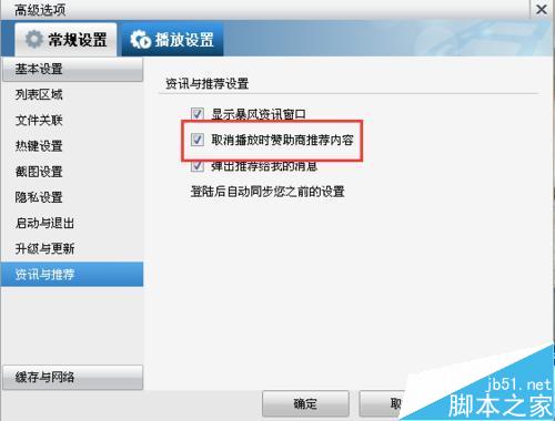 5、将“取消播放时赞助商推荐内容”前面画上√,然后点击应用和确定,就设置好了。