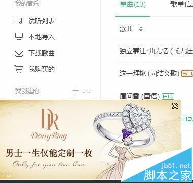 2、于是点一下广告右上角的小叉,但是广告只是变小了,依旧遮住了歌曲列表