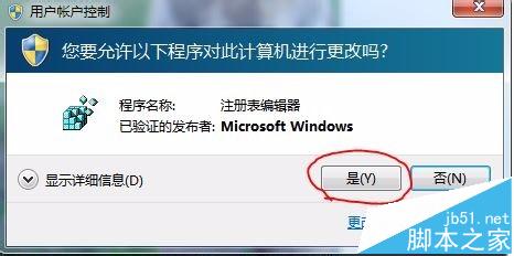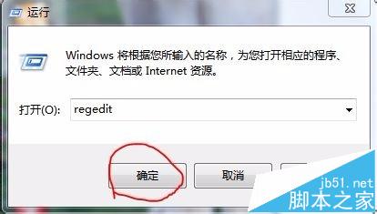 2、在运行窗口中输入“regedit”,然后点确定就可以打开注册表编辑器。如果你开启了用户帐户控制,需要再点“是”。