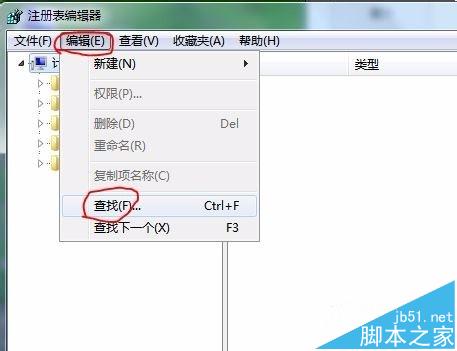 3、在注册表编辑器中点击"编辑",然后点击"查找"。