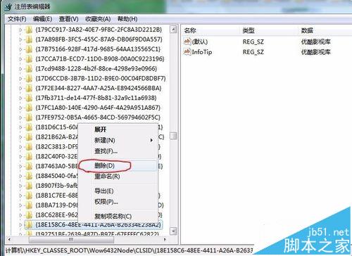 5、查找到后,直接删除包含此关键字的条目。右键点击-删除-是。