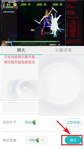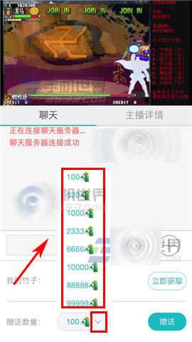 2)点击数量右边【v】,选择竹子【数量】,接着点击【赠送】即可。(如下图)