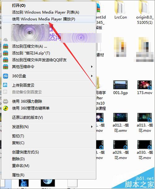 2、在它的缩略图上面点击右键,选择系统自带的windows media player进行播放的时候,是可以进行正常的播放。就是缩略图会显示出白色。