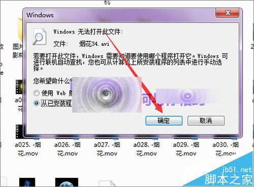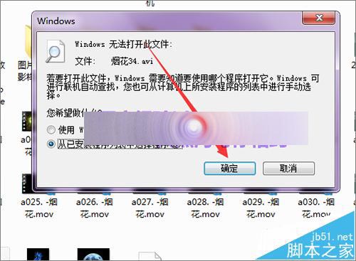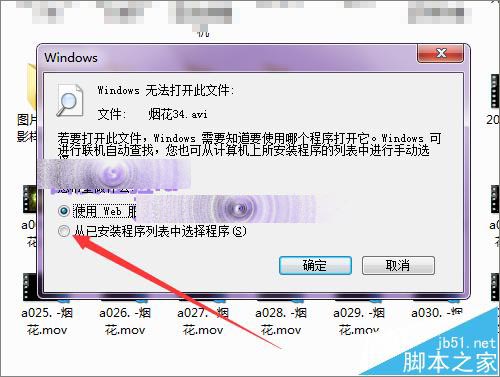 3、当在这个avi视频上面双击打开后,它会弹出这样一个提示:无法打开些文件。这时,点击下面的从已安装程序列表中选择程序。然后点击确定。