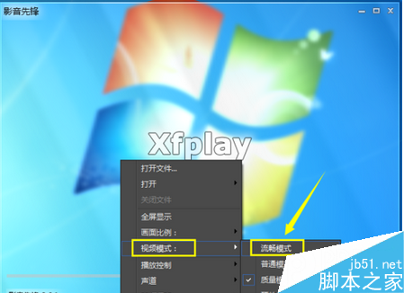 右击视频播放界面,从弹出的扩展菜单中选择”视频模式“->”流畅模式“即可。