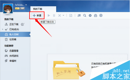 运行迅雷程序,点击程序主界面中的”新建“按钮。