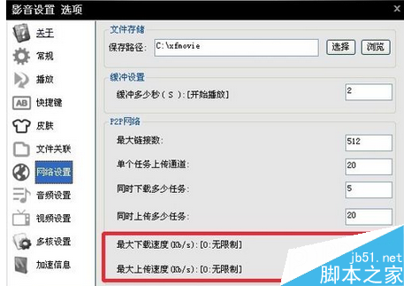 网络设置里面,我们这里查看P2P网络的速度没有被限制,当然这里我们还可以适当的增加最大链接数,不要增加太多,这里默认的是512。