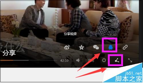 2、打开一个自己喜欢的电视剧,将鼠标放到电视剧上,会在屏幕右下角弹出分享按钮,点击“分享按钮”,然后点击“QQ企鹅图标”。
