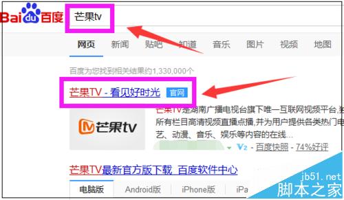 1、百度上搜索“芒果tv”,点击搜索出来的第一个“芒果tv—看见好时光官网”。