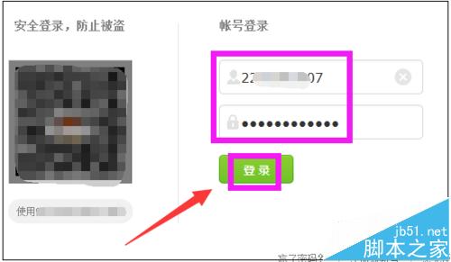 4、这时会弹出帐号登录的窗口,输入QQ帐号和密码,点击"登录"。