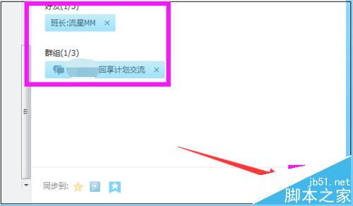 6、点击QQ好友和QQ群后,此QQ好友和QQ群的名称就出现在右侧的空白处,选择好后点击右下角的"发送”。