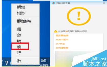 打开优酷客户端,右击优酷客户端-检测,打开优酷检测工具,然后点击一键修复。