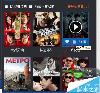 2、切换到电影链接后把鼠标移到你不喜欢的电影上会看到一个删除图标,点击删除。