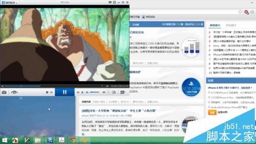 3、打开网络浏览器后,尽量的缩小暴风影音的窗口,可以发现宽度最小还是至少要占用屏幕总宽度的一半,而右边浏览器无法完整浏览网页,如下图所示: