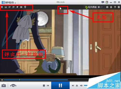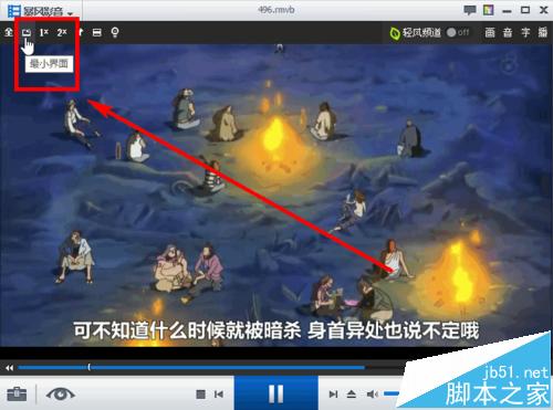 4、怎样可以再尽量缩小窗口呢?方法就是把鼠标光标移动到暴风影音窗口上边框附近,此时就会弹出一栏按钮,如下图所示: