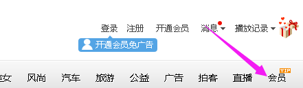 3、在登录下方有一栏电影分类栏目,我们点击最右边的会员。